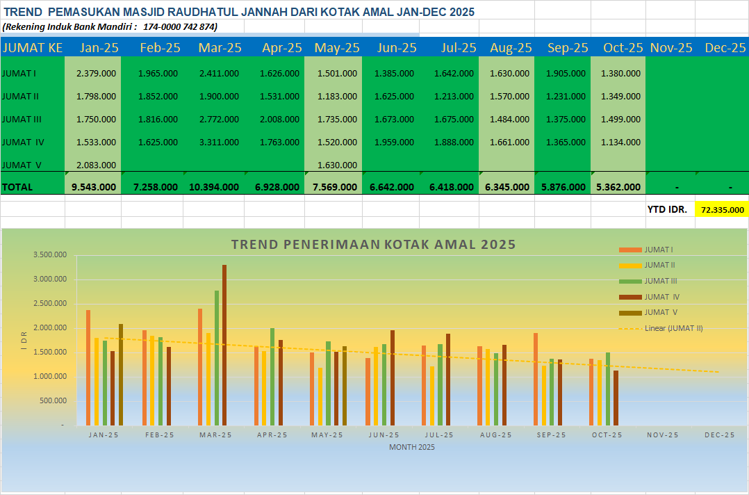 Berikut disampaikan laporan perkembangan penerimaan kotak amal per pekan sepanjang tahun 2025 sebagai berikut :